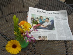 I decided on a lark one Sunday morning to pick up the New York Times, to give it another go. It turned out to be the perfect companion for me. I spent all of my free time that week pouring over every section, fascinated (to my great surprise) even by the wedding announcements. Unlike the other papers I’ve read, the New York Times isn’t so much about “place,” though it does carry a distinctly New York pretension – well deserved, I might add, unlike that of some other cities who shall not be named (again). It’s more like having this brilliant essence stop by and share with me all of its thoughts and ideas about everything going on in the world. I felt like I’d made a new friend, one who made me a better person. And so I began to pick up my friend each week in what became a favorite ritual.