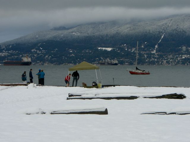The year passed, and it snowed over the 2008 Christmas holiday.  The city all but shut down — snow in Vancouver is a rarity — and I’d hibernated for a week with a bad cold, so by the time New Years Day 2009 came around, I was ready to get outside.  I don’t drive much in the snow (LA girl, go figure), so I took the 99-B Line down Broadway to Alma and walked over to Jericho Beach.   Here’s what I saw that day: