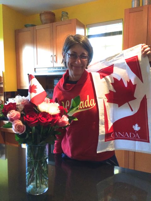 On that spectacularly sunny morning, as I opened my eyes, my sweetheart presented me with a gift of red socks with the word “Canada” across the top – how chic!IMG_0026 And in the kitchen, I found a gorgeous bouquet of a dozen red roses, red carnations, white daisies and a white mum, plus six pink roses (“for love”). The vase was sitting on a souvenir tea towel with a huge red maple leaf and the word “Canada” across the bottom. What a welcome to my new home country!photo 3 But wait, there’s more! Continue reading